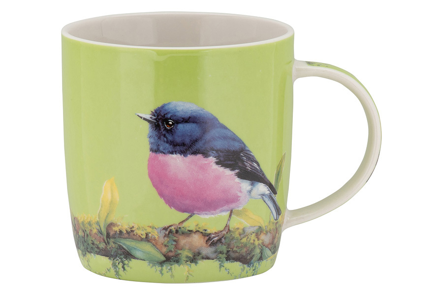 Кружка, 370 мл, фарфор P, зеленая, Малиновка, Bird Talk
