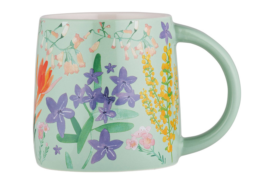 Кружка, 370 мл, фарфор P, зеленая, Цветы, Garland