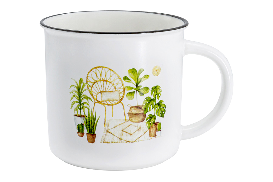 Кружка, 380 мл, фарфор N, белая, с черным кантом, Комнатные растения, Idyll