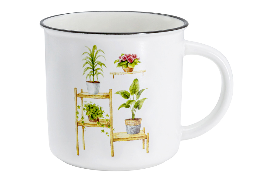 Кружка, 380 мл, фарфор N, белая, с черным кантом, Растения на подставке, Idyll