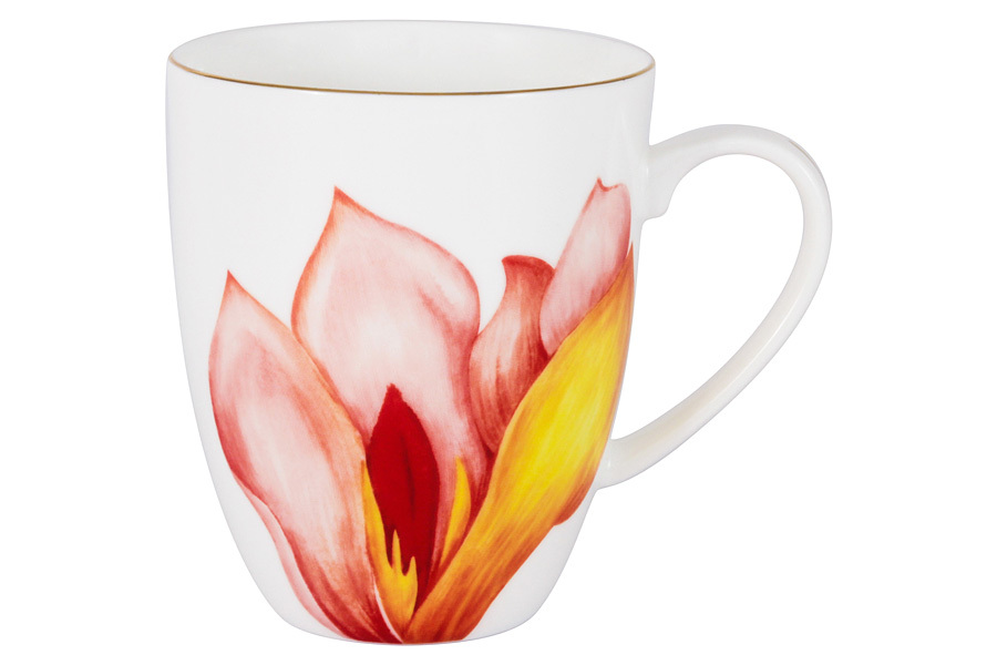 Кружка, 400 мл, фарфор F, белая, с золотистым кантом, Магнолия, Flowers