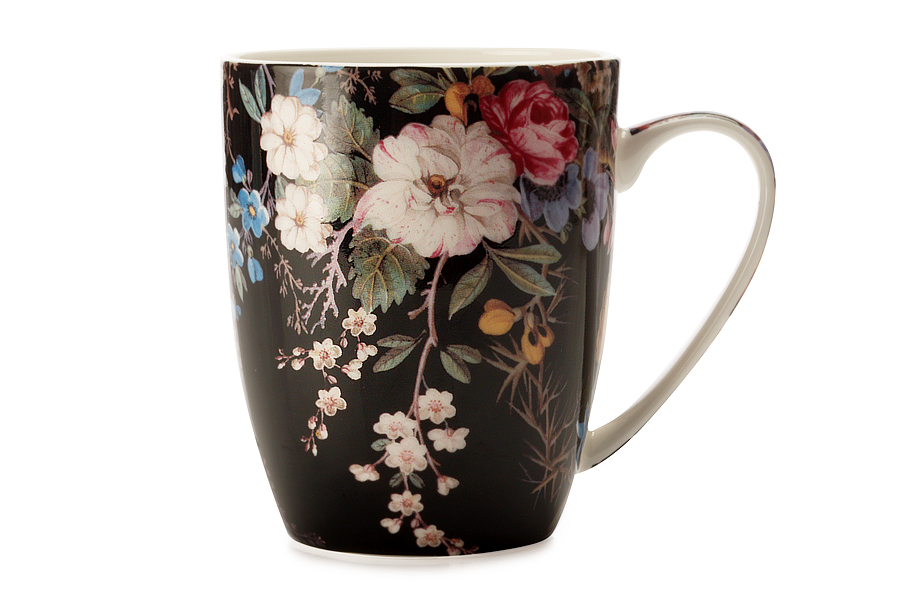 Кружка, 400 мл, фарфор F, черная, Цветы, William Kilburn