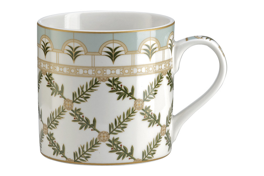 Кружка, 400 мл, фарфор N, белая, Еловые ветви, с серо-зеленой полосой, Rosita