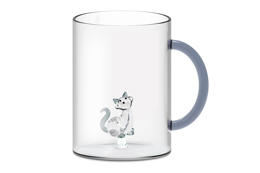 Кружка, 420 мл, стекло Б, с серой ручкой, Кошка, Monterey
