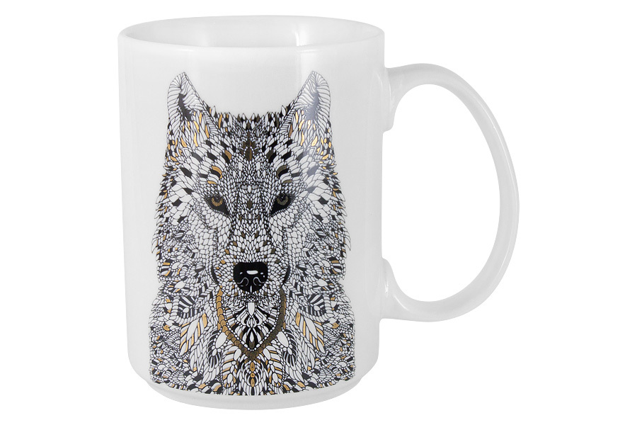 Кружка, 500 мл, фарфор N, белая, Волк, Wild