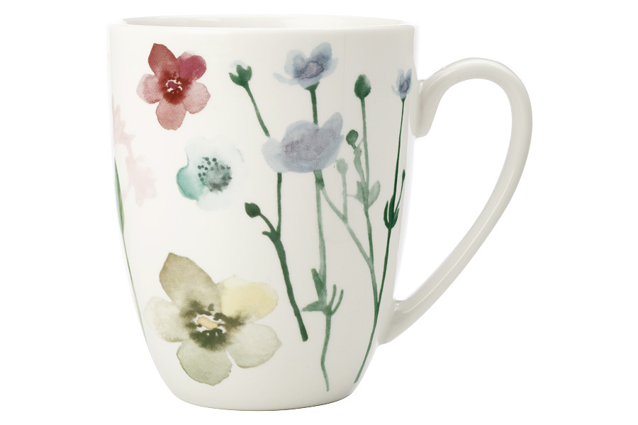 Кружка, 420 мл, фарфор P, белая, Цветы, Wildwood