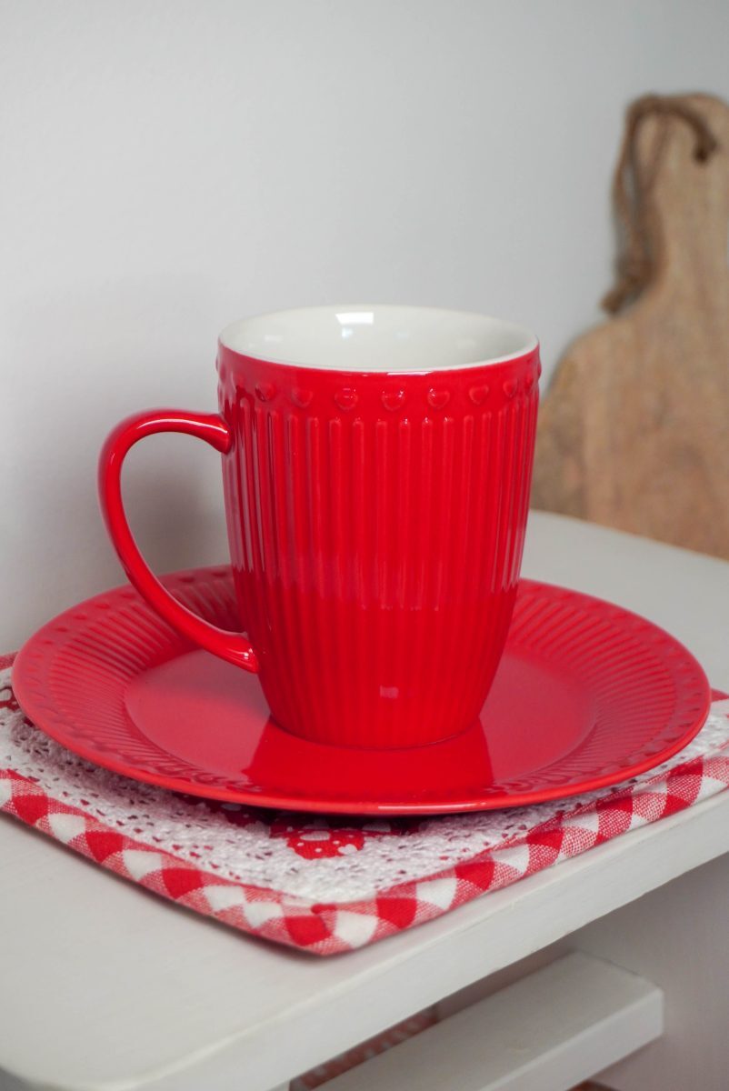 Фарфоровая кружка Love ярко-красного цвета с маленькими сердечками по краю и узором из линий легко дополнит собой торжественную сервировку. Фарфор и покрытие из экологически чистых материалов наделены особой прочностью, не подвержены царапинам и сколам, не теряют насыщенности цвета при длительной эксплуатации, а плотная структура исключает впитывание внешних запахов и красителей. Фарфор не выделяет в пищу вредные вещества, активные при соприкосновении с продуктами. Кружку можно использовать в микроволновой печи, мыть в посудомоечной машине.