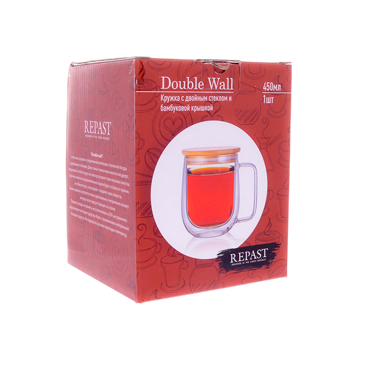 Кружка с двойным стеклом и бамбуковой крышкой Repast Double wall 450 мл