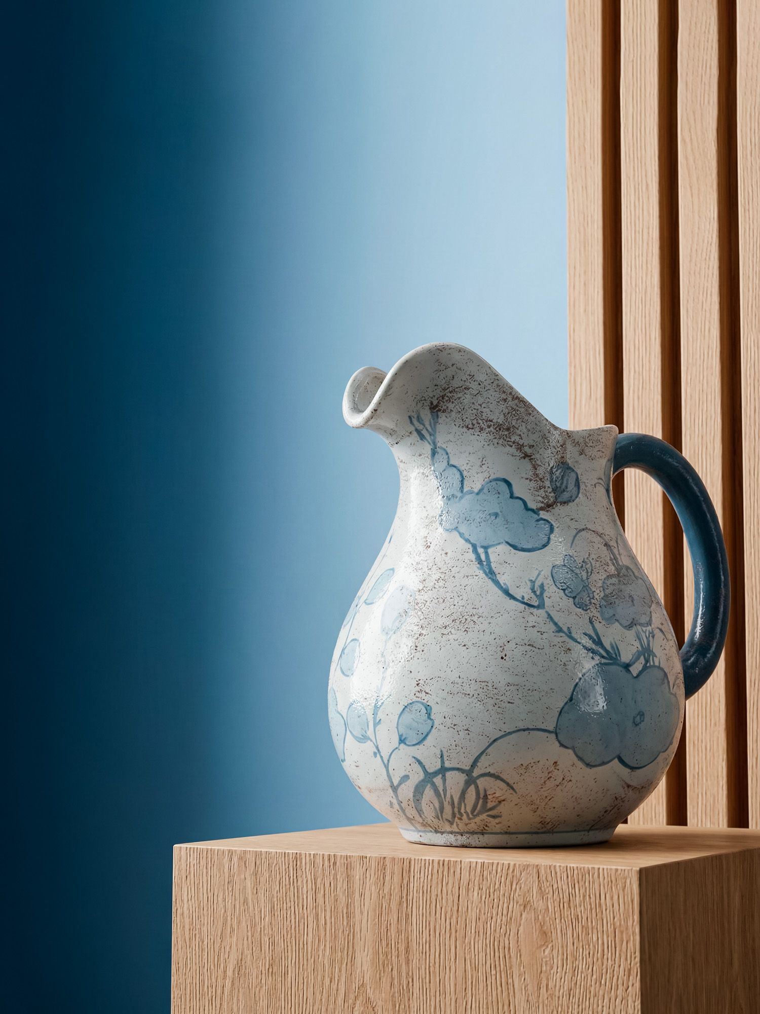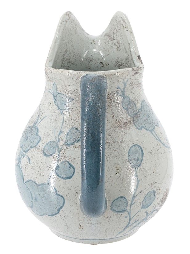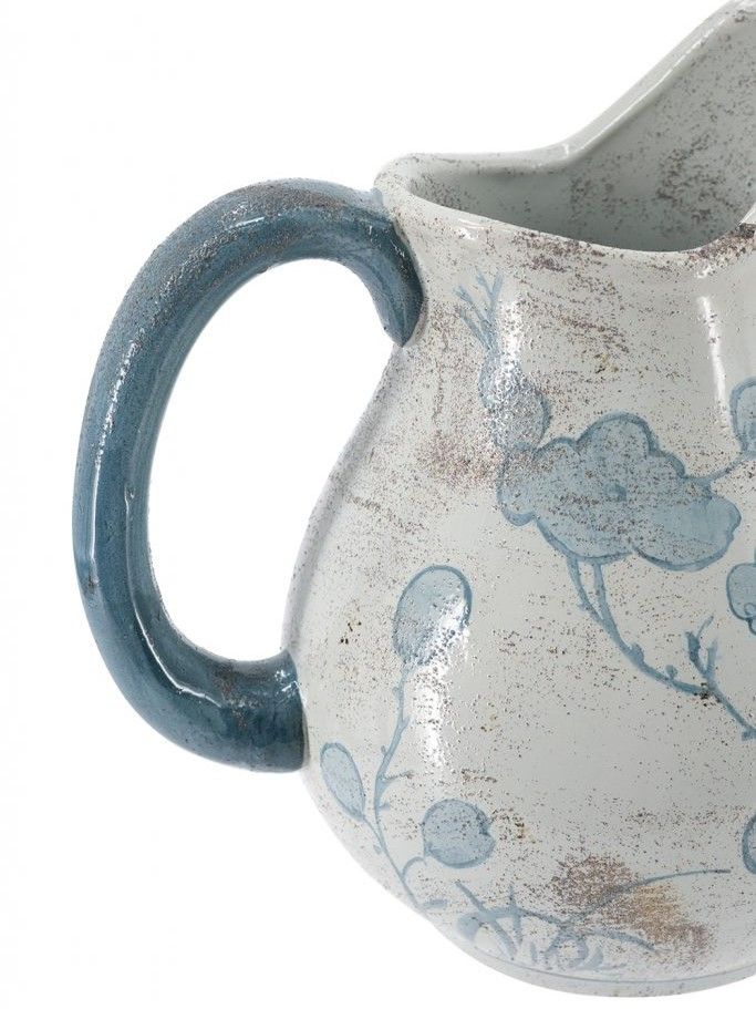 Декоративный кувшин классической формы продемонстрирует изогнутый силуэт, украшенный синими узорами распустившихся цветов на винтажно-белом фоне. Независимо от того, выставлен ​​ли он как отдельная часть декора или заполнен яркой коллекцией цветов, кувшин обязательно послужит изысканным центральным элементом на вашем журнальном столике, каминной полке или серванте. Изделие легко впишется в любой стиль интерьера, включая традиционный, переходный и современный.