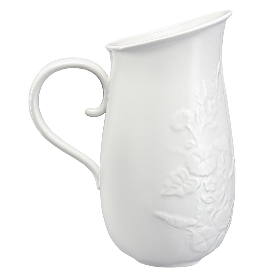 "Кувшин English Gardens – выбор настоящих эстетов и возможность привнести в сервировку частичку природной элегантности. Плавные линии, мягкие формы и утонченный цветочный узор создают ощущение свежести и легкости, уюта и гармонии. Вы можете подавать в нем сок, компот, воду или использовать вместо вазы.