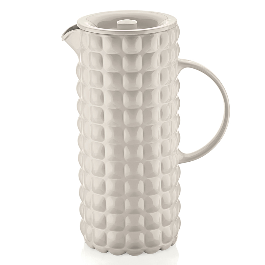 "Кувшин Tiffany идеально подходит для подачи соков, освежающих лимонадов и может использоваться для сервировки как в помещении, так и на свежем воздухе. Наличие крышки исключает попадание внутрь емкости пыли и насекомых.