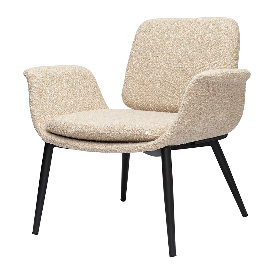 - Обивка из буклированной ткани делает кресло уютным и элегантным. Прочный и износостойкий материал долго сохраняет первоначальные качества, легко чистится.