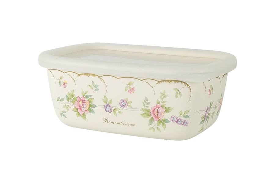 Лоток, 16х11 см, 500 мл, с крышкой, с покрытием, сталь/пластик, молочный, Цветы, Remembrance