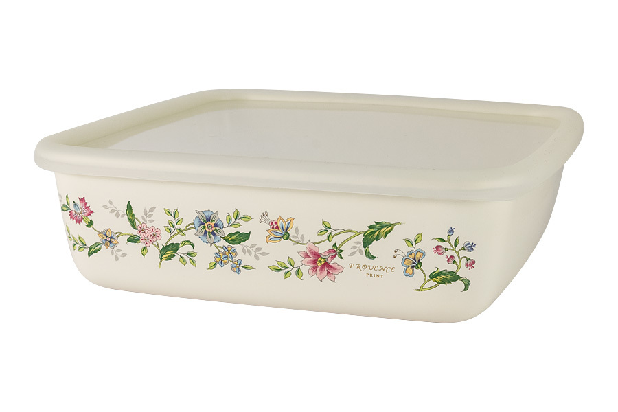 Лоток, 21х21 см, 1,75 л, с крышкой, с покрытием, сталь/пластик, молочный, Цветы, Provence