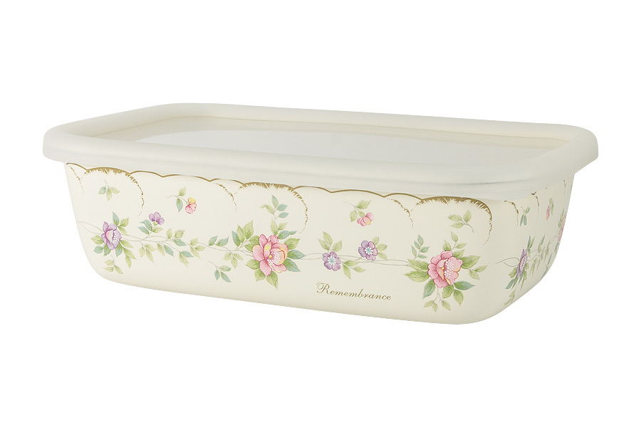 Лоток, 21х13 см, 1,0 л, с крышкой, с покрытием, сталь/пластик, молочный, Цветы, Remembrance