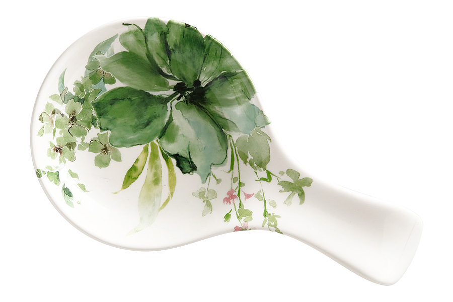 Подставка под ложку, 24 см, керамика, белая, Зеленые цветы, Botanical
