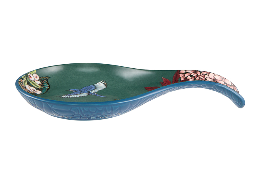 Подставка под ложку, 22 см, керамика К, сине-зеленая, Цветы и птица, Reminisce