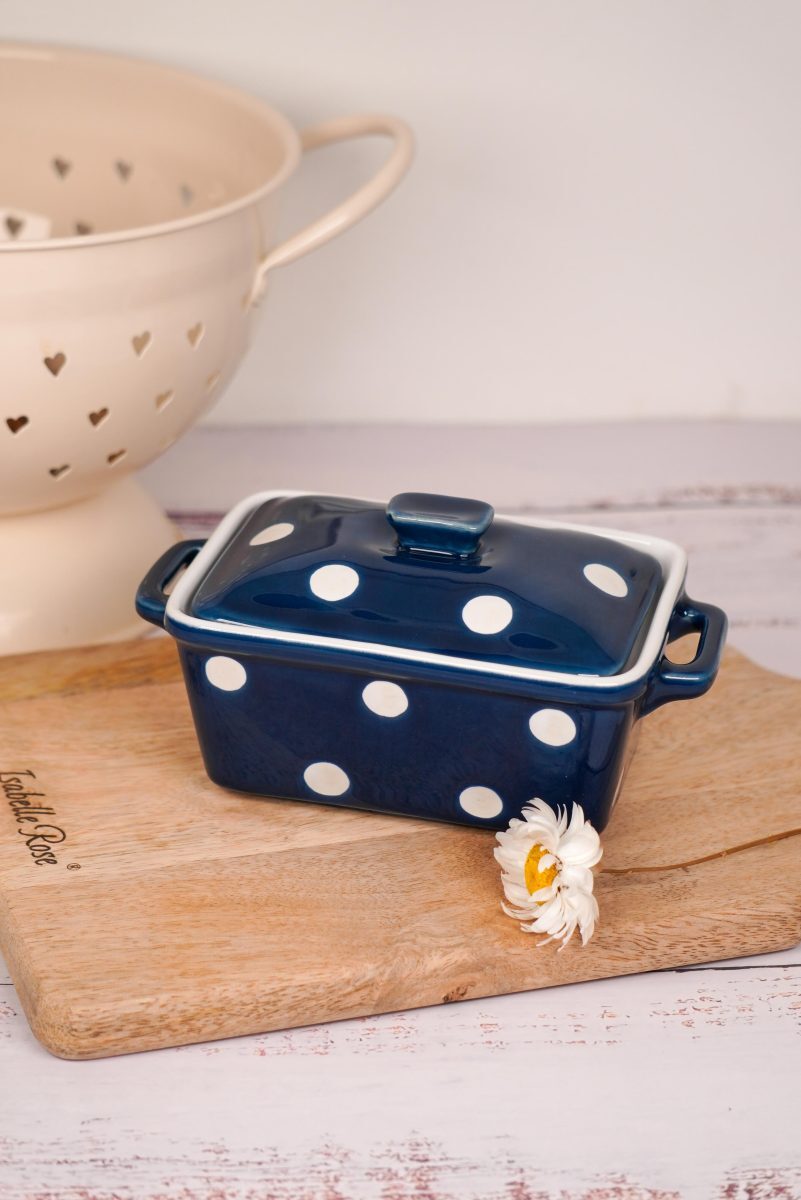 Масленка с крышкой Isabelle Rose, в сдержанной винтажной атмосфере, выполнена из жаропрочной керамики. Высокая функциональность материала позволяет использовать маслёнку не только для хранения продукта, но и в качестве формы для запекания. Посуда из жаропрочной керамики выдерживает замораживание, температуру до +260 C и подходит для мытья в посудомоечной машине. Крышка в едином стиле сохраняет продукты от воздействия воздуха и солнечных лучей. Масленка спокойного цвета, в традиционный для Isabelle Rose белый горошек, благодаря лаконичному дизайну и уникальной стилистике украсит любую сервировку со скандинавскими мотивами и будет эстетично смотреться на вашей кухне. Размеры: 16,5x10x8 см.