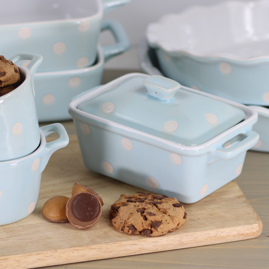 Масленка пастельного голубого оттенка, в традиционный для Isbelle Rose белый горошек, благодаря лаконичному дизайну и уникальной стилистике украсит любую сервировку со скандинавскими мотивами и будет эстетично смотреться на вашей кухне.