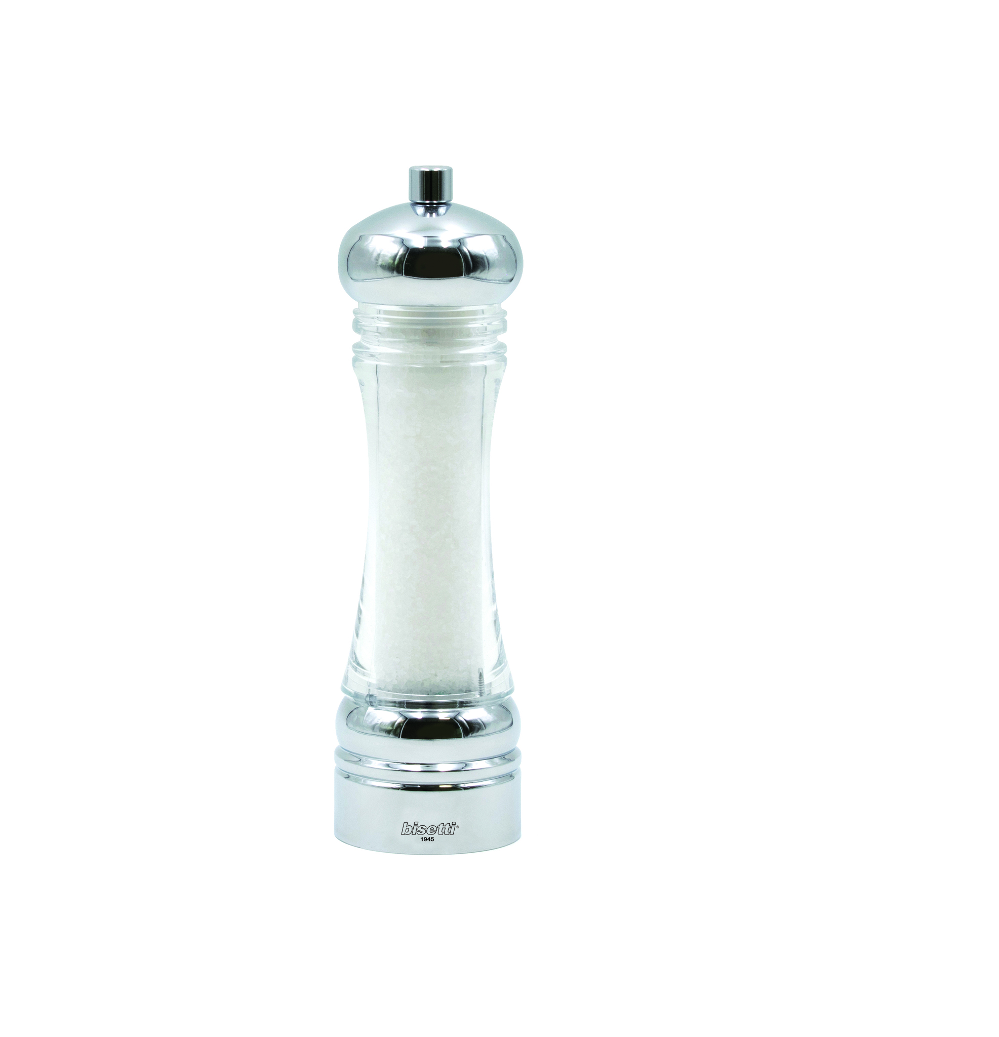 Мельница для соли h 21,5 см, акрил, верх. и ниж. части хромированные, прозрачная, TAORMINA