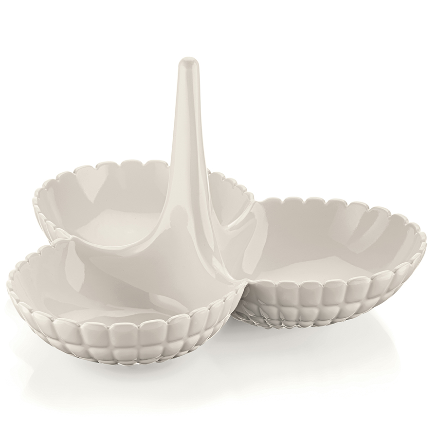"Менажница Tiffany прекрасно подойдет для повседневной и праздничной сервировки стола и будет великолепно смотреться как в помещении, так и на летней веранде. Ее можно использовать для подачи снеков, легких закусок, орехов или сладостей. Благодаря лаконичному дизайну и классическому цветовому решению она прекрасно сочетается с любой посудой.