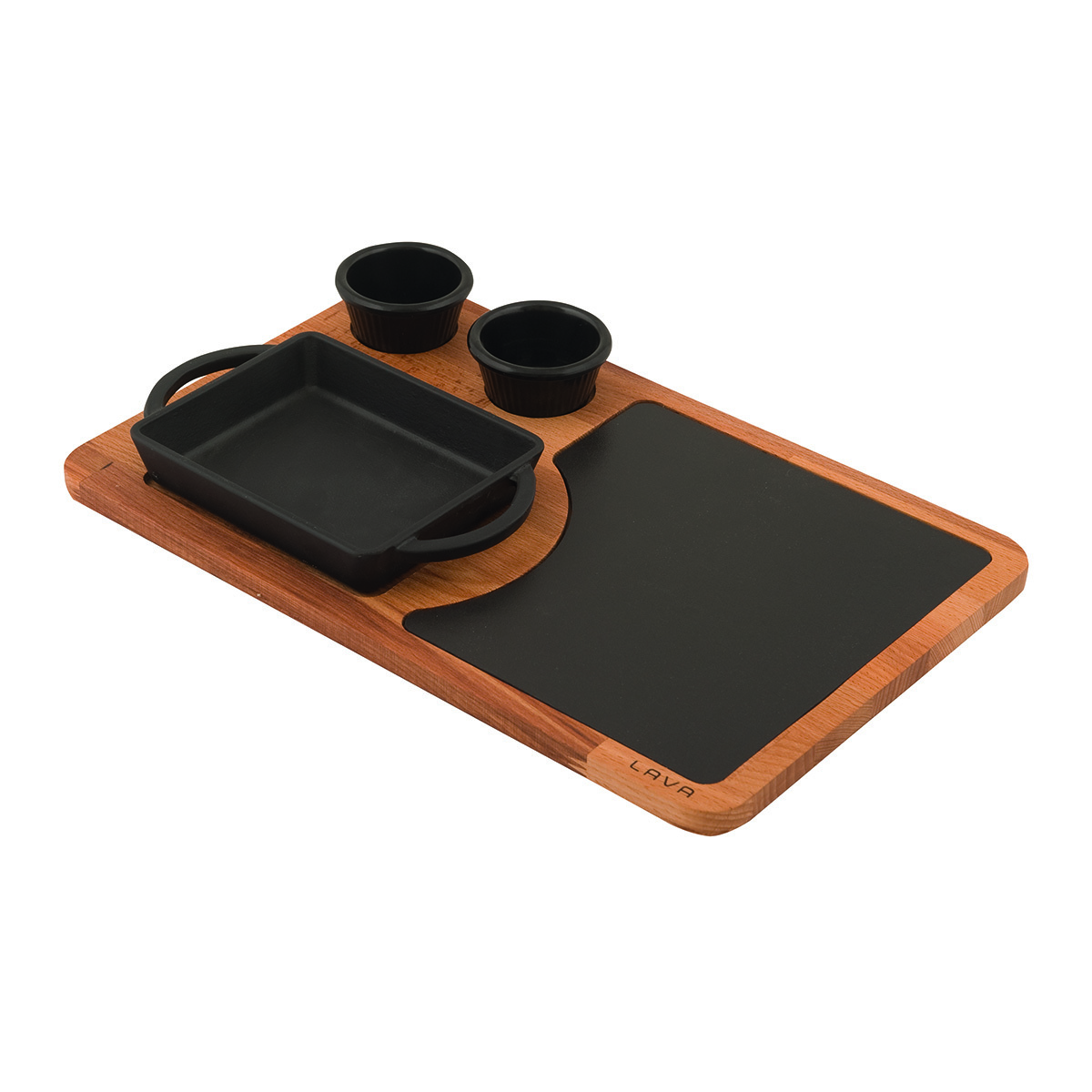 Мини блюдо на деревянном подносе с чугунной панелью12x12cm.(не включает соусники)