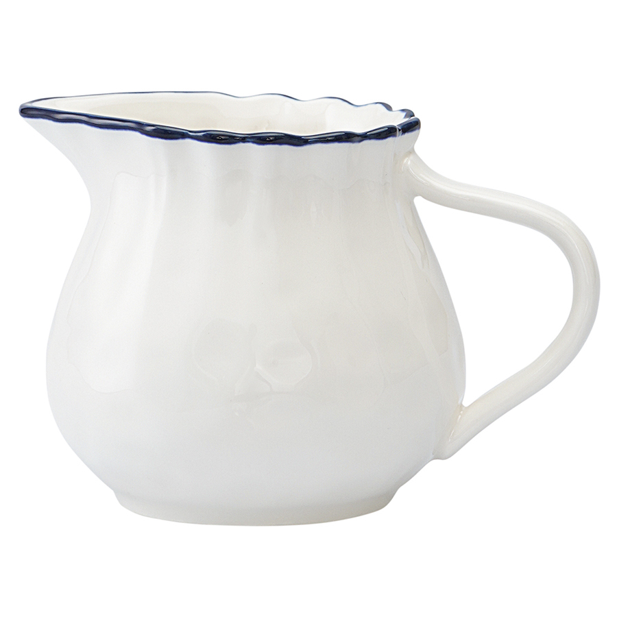 "Молочник из коллекции Santorini от бренда Liberty Jones воплощает в себе элегантность посуды из фарфора, привлекая необычным дизайном с контрастными акцентами.