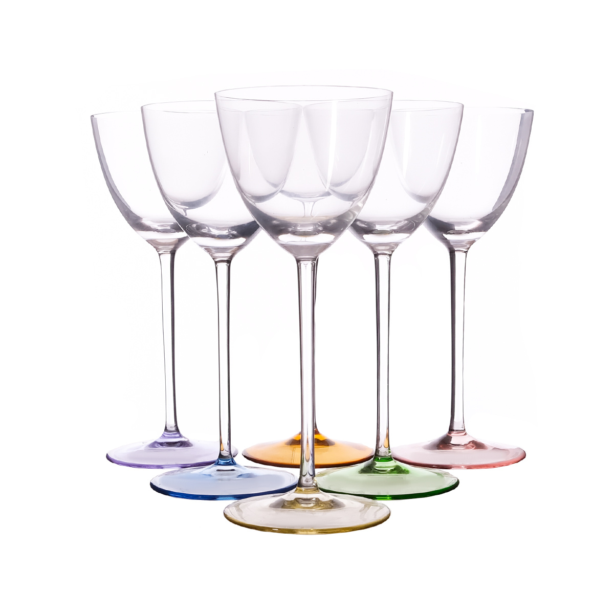 В набор утонченных и легких бокалов для дегустации и подачи вина входит 6 изделий. Отличительная и характерная особенность серии Арлекино Suzanne, которая представлена вашему вниманию, является полное отсутствие гравировки чаши и наличие основания разного цвета у каждого бокала. Чешский бренд Crystalite Bohemia представляет изделия, качество и презентабельный внешний вид которых даже после длительного использования гарантирует. Объем чаши бокала составляет 200 мл.