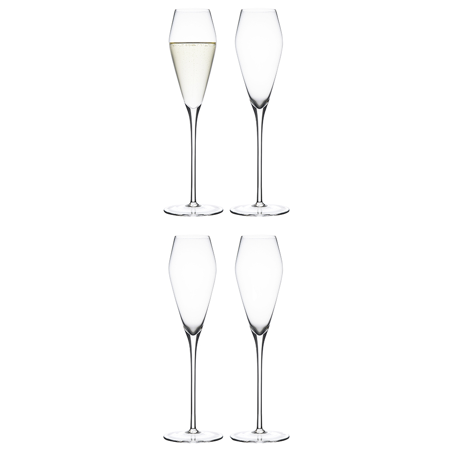 "Бокалы для шампанского Flavor имеют идеальную форму, которая позволяет намного дольше любоваться стройными рядами пузырьков, эффектно поднимающимися от самого дна к поверхности. Зауженное горлышко дает напитку больше пространства, чтобы раскрыться и передать все тонкости аромата, которые будут ощущаться при каждом глотке. Изделия из выдувного стекла восхищают утонченными формами, правильными пропорциями и качественным исполнением. Изготовление выдувным способом обеспечивает бокалам отличные износостойкие свойства и высокую прозрачность.