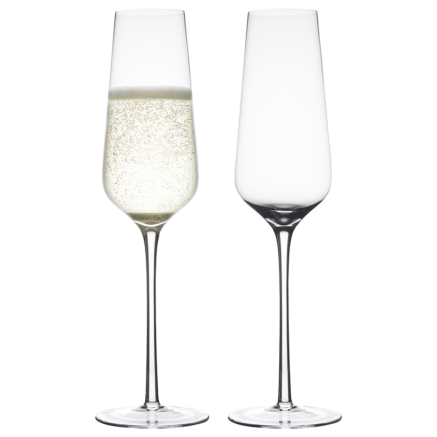"Бокалы Flavor – прекрасный подарок для настоящих ценителей шампанского. Изделия из выдувного стекла восхищают утонченными формами, правильными пропорциями и качественным исполнением. Изготовление выдувным способом обеспечивает посуде отличные износостойкие свойства и высокую прозрачность. К идеально гладким стенкам приятно прикасаться. Чаша вытянутой формы с зауженным верхом позволяет дольше сохранить пузырьки и насладиться легкостью и ароматом напитка.