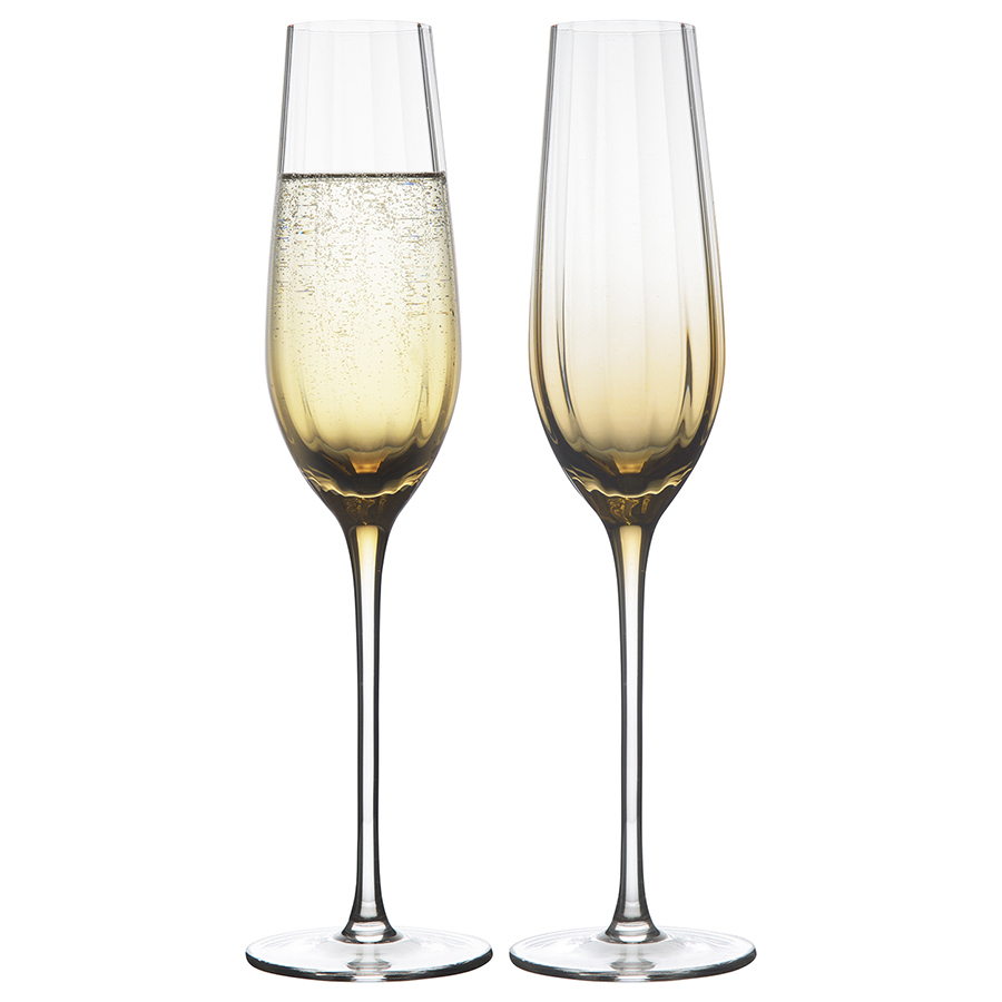 Бокалы для шампанского Gemma Amber специальной вытянутой формы позволят дольше любоваться стройными рядами пузырьков и раскроют все тонкости вкуса и аромата игристого напитка. Узкое горло минимизирует соприкосновение жидкости с воздухом, что обеспечивает более медленное испарение углекислоты. Удлиненная ножка делает силуэт утонченным и не дает вину нагреваться от тепла руки. Материал, из которого выполнены изделия, долговечный, не требует сложного ухода. Комбинируйте предметы из одноименной линейки – декантер, бокалы, стаканы для воды, чтобы создать завершенную композицию и удивить гостей изысканной сервировкой.