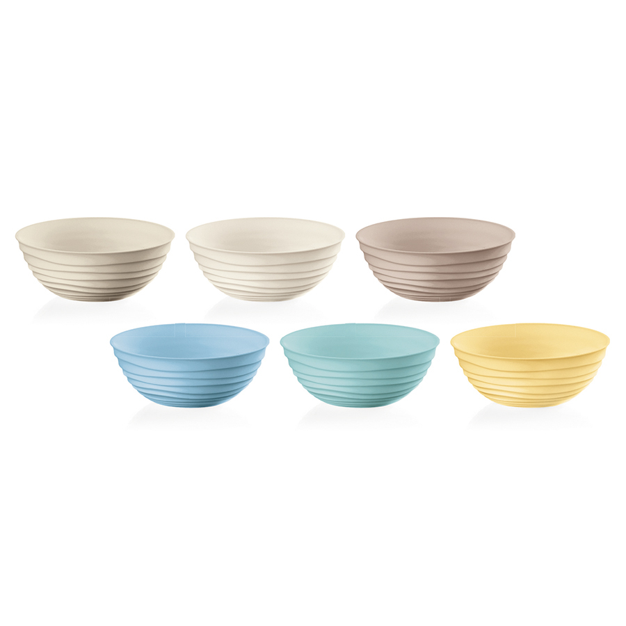 "Набор из 6 чаш Tierra диаметром 12 см подойдет для сервировки повседневного и праздничного стола. Посуда предназначена для подачи закусок и салатов. Изделие разработано Pio&Tito Toso по запатентованной технологии из перерабатываемого продукта. В качестве исходного сырья выступают пластиковые бутылки объемом 1,5 л. Дизайн посуды напоминает керамику. Уникальности внешнему виду придают тщательно подобранные оттенки земли и природы, а также намеренно неровные круговые рисунки, создающие эффект ручной работы. Чаши отлично гармонирует с другими предметами коллекции Tierra. Можно мыть в посудомоечной машине при температуре не более 55 градусов. Изделия не подходят для микроволновой печи. Объем миски – 348 мл."