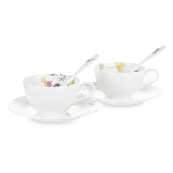 Набор чашек чайных с блюдцами и ложками Narumi Сад Люси 6 предметов, фарфор костяной, п/к