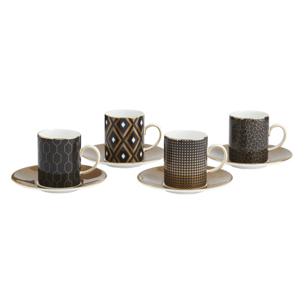 Набор чашек для эспрессо с блюдцами Wedgwood Джио Голд 73 мл, 4 шт, фарфор, п/к