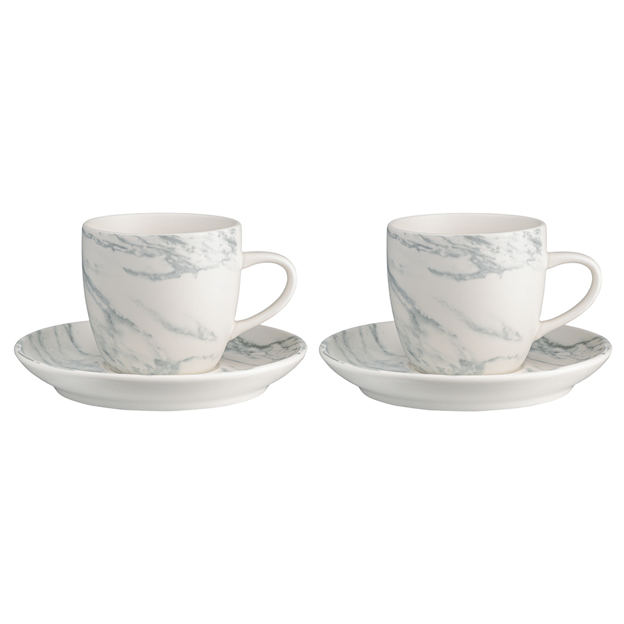 "Чайная пара серии Marble – удачное сочетание стильного дизайна и превосходного качества. Коллекцию отличает ненавязчивый мраморный узор, который придает посуде элегантность и нотки благородства. Благодаря устойчивому к износу материалу изделия сохраняют привлекательный вид долгие годы. Набор подходит для повседневной и праздничной сервировки стола.