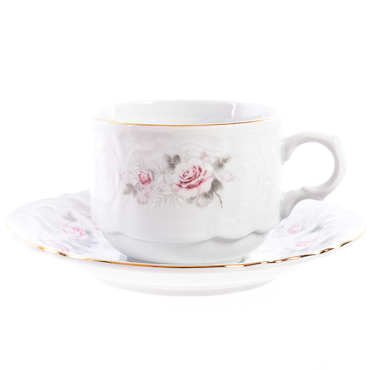 Набор чайный пар хотел Bernadotte Серая роза золото 250 мл(6 пар)