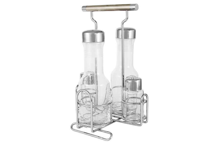 Подставка, солонка, перечница, 2 бутылки для масла и уксуса