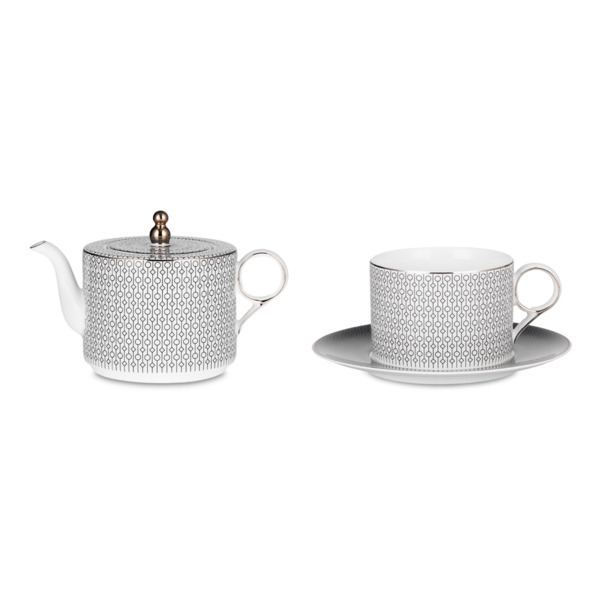 Набор эгоист Decor de table Вола, чайник 300 мл, чашка 200 мл, блюдце 16 см, платиновый кант, п/к