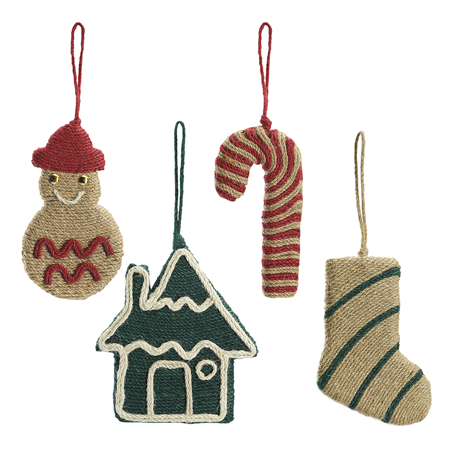 Материалы: джут, картон. Размеры украшений: 9,5х1х13,5 см, 6,5х1х14 см, 8,3х1х14 см, 11,5х1х13,2 см. Количество украшений в наборе: 4 шт."