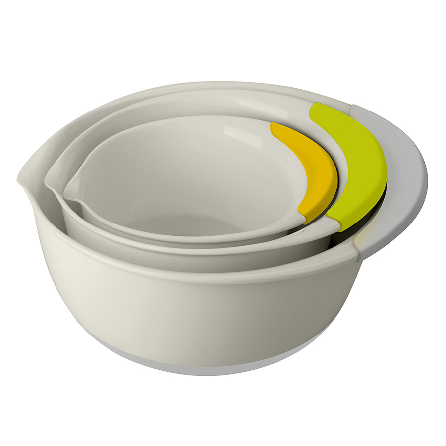 "Набор емкостей для смешивания разных размеров Mixy облегчит процесс готовки и за счет разноцветного дизайна станет ярким акцентом в интерьере кухни.
