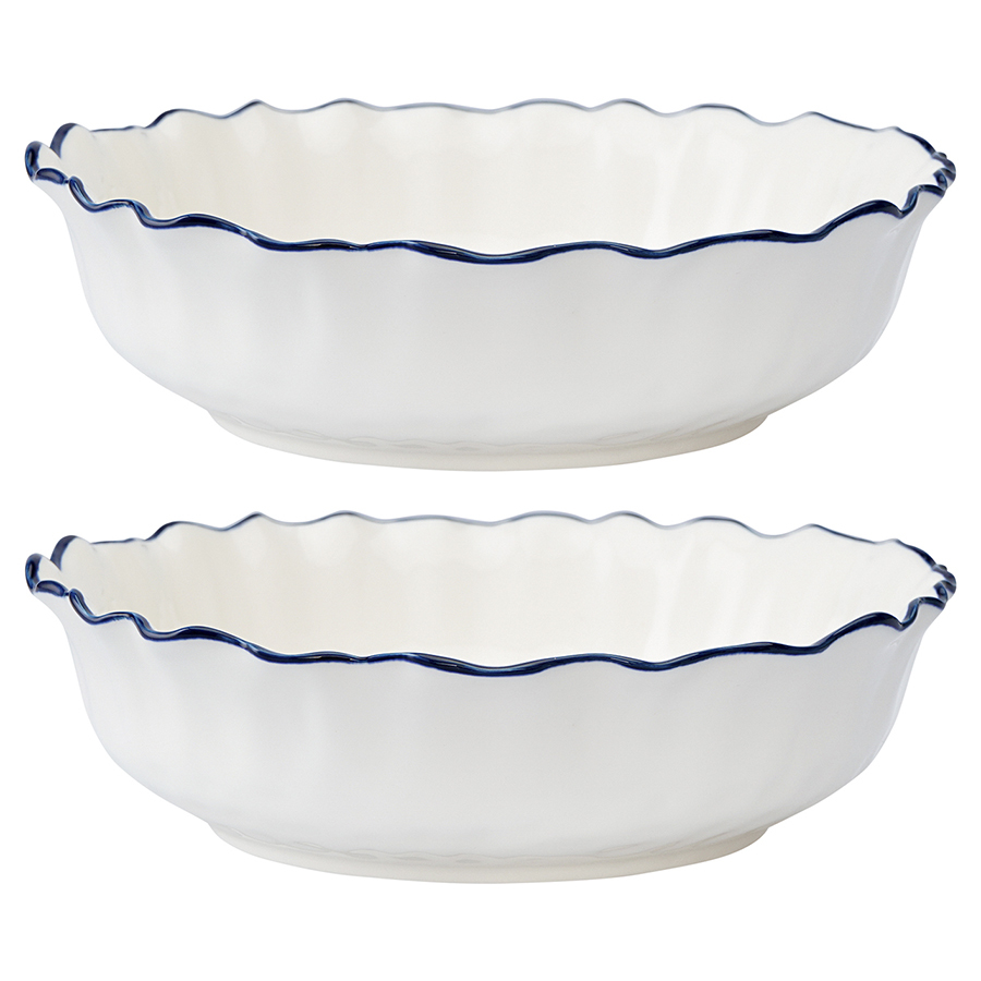 "Тарелки глубокие из коллекции Santorini от бренда Liberty Jones воплощают в себе элегантность посуды из фарфора, привлекая необычным дизайном с контрастными акцентами.