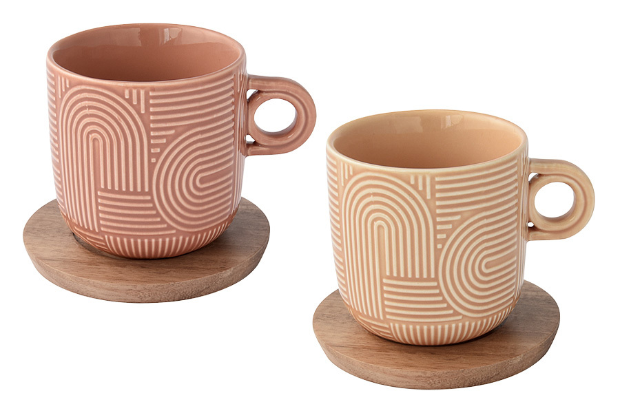 Чашка, 250 мл, 2 шт, на подставке, фарфор P/дерево, бежевый/коричневый, Take a loop