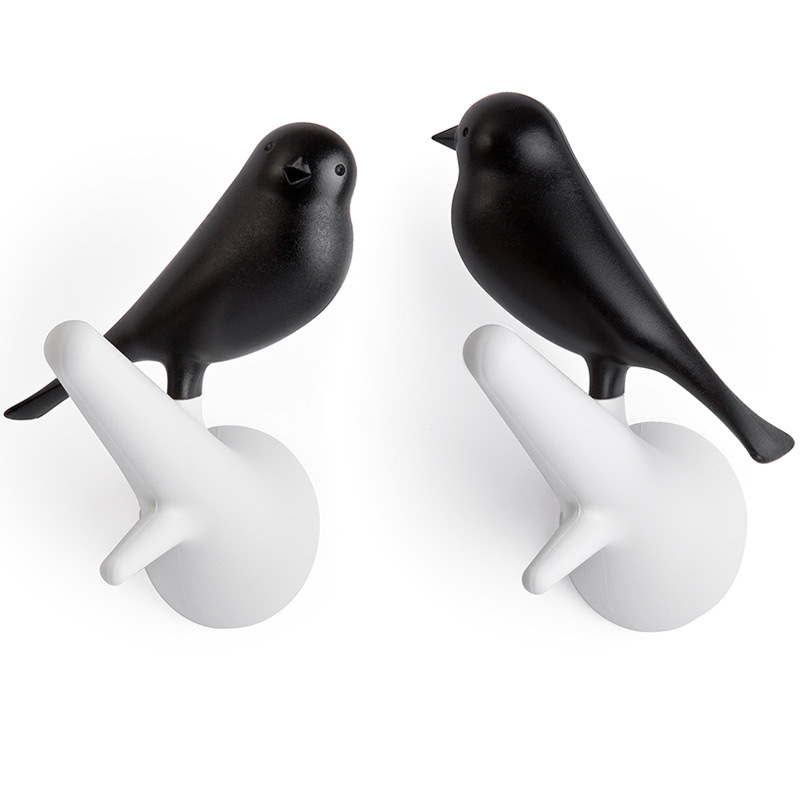"Знаменитый Воробей от Qualy! Даже самые заядлые скептики не останутся равнодушными к этим утонченным вешалкам. В комплекте две птички, надежно прикрепляемые к стене. С помощью птичек разных цветов можно создать удивительную композицию, одинаково хорошо смотрящуюся дома, в офисе, магазине или кафе."