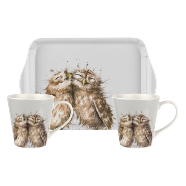 Набор из 2 кружек 180 мл на подносе Pimpernel Забавная фауна Совы, 21х14 см