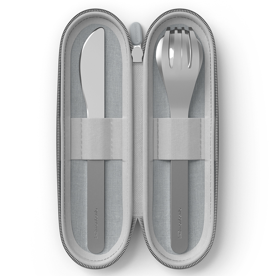 "Набор столовых приборов MB Slim Nest – идеальный вариант для сервировки походного обеда. Мягкий текстильный футляр с замком-молнией удобен для хранения и переноски. Инструменты крепятся под резинку, не дребезжат при транспортировке. Ложка, вилка и нож изготовлены из матовой нержавеющей стали, которая практична в использовании, устойчива к коррозии и царапинам.