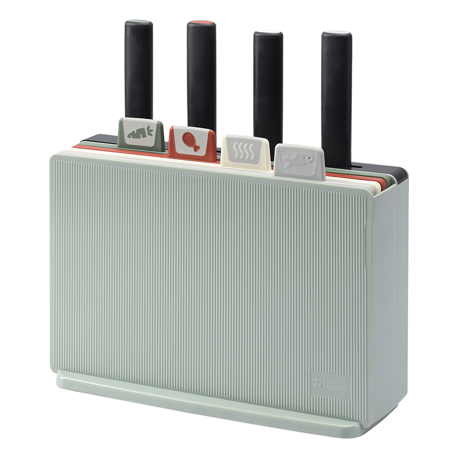 "Набор , ,Cut&Store из 9 предметов – идеальное решение для любителей готовить и ценителей порядка на кухне. В комплект входят 4 разделочные доски из полипропилена, 4 ножа различного назначения и специальный держатель для их удобного хранения.