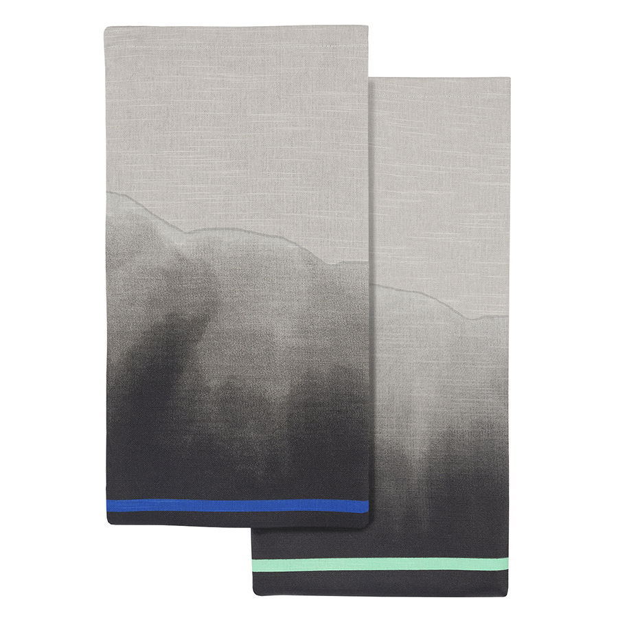 "Набор из двух кухонных полотенец из коллекции Slow Motion с акварельным рисунком и яркой линией, напоминающий ландшафты северных стран, станет изюминкой интерьера кухни. Философия slow living, где поиск спокойствия и радости, обретение баланса — не пустые слова, а принцип жизни. Линейка Slow Motion - вторая коллаборация с дизайнером Димой Логиновым.