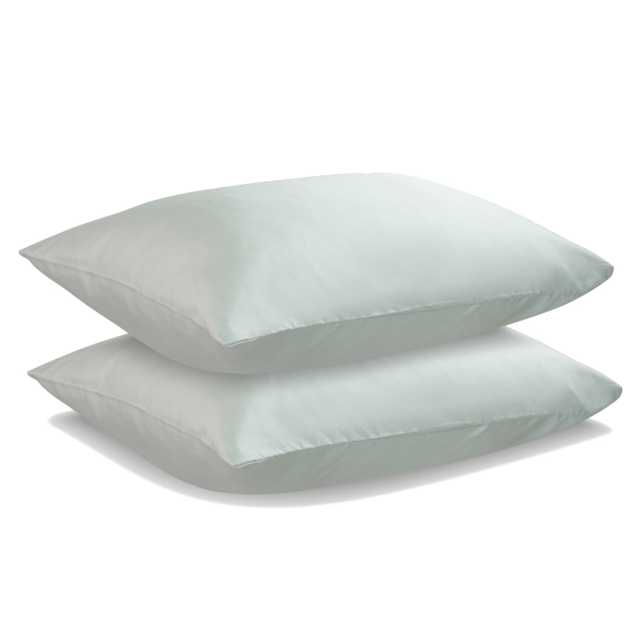 "Универсальный комплект из двух наволочек из гладкого и мягкого сатина плотностью в 210ТС. Только натуральный хлопок в составе и нежный мятный оттенок для самых красивых и долгих снов.