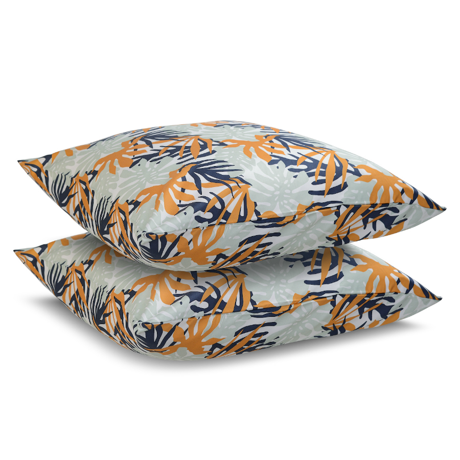 "Комплект наволочек с флористическим принтом Leaves станет ярким акцентом в вашей спальне. Гладкий, приятный на ощупь материал плотностью 210 ТС отличается особым способом пряжи – нити переплетаются в скрученном виде, что придает ткани дополнительную прочность.