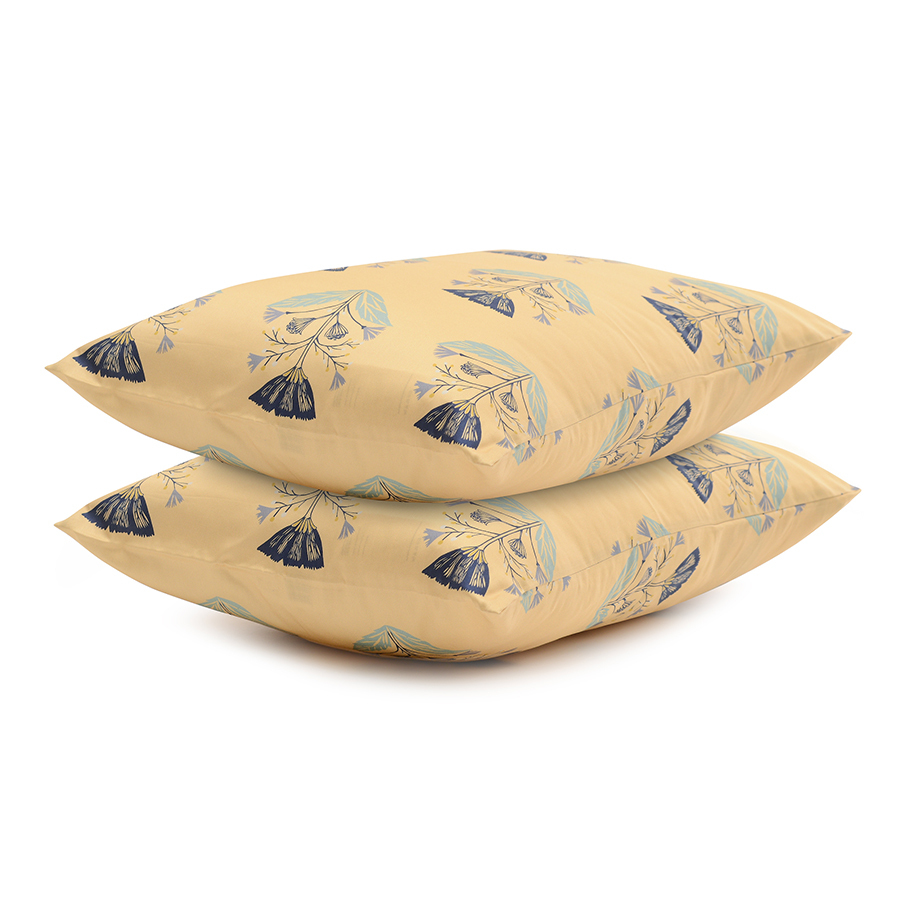 "Набор из двух наволочек из сатина с принтом ",Летний цветок", коллекции Essential – отличный вариант для тех, кто любит теплые оттенки и природные мотивы в интерьере. Гладкий, приятный на ощупь материал плотностью 210 TC отличается особым способом пряжи – нити переплетаются в скрученном виде, что придает ткани дополнительную прочность.